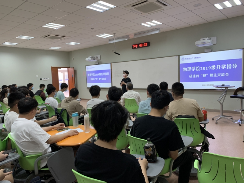 辅导员刘思佳介绍了近年学院本科毕业生升学情况,对物理专业数据进行了纵向比对、分析。结合2019级本科生意向调研情况,建议同学们对标自身能力合理确定目标,以积极饱满的情绪面对升学。
