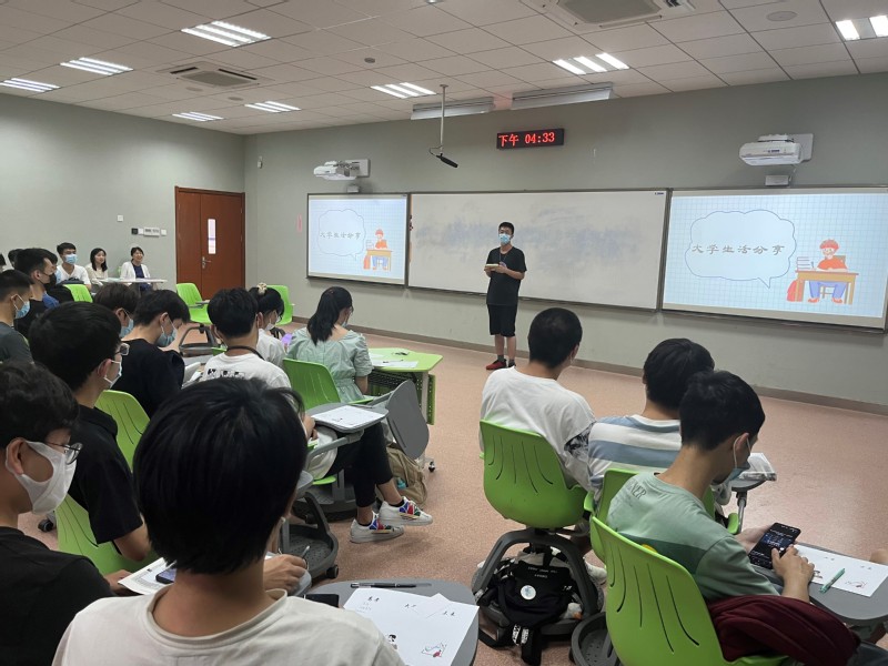 走过高考的奋斗,迎来大学的相遇。一段满载同学们大一学年心路历程的视频,带领大家回忆了大学第一年中奋斗的汗水、收获的喜悦,还有老师同学的温暖相伴,当然也有些许遗憾。姚树鑫围绕一些遗憾,向同学们发出了关于日常选择的“灵魂拷问”:“闹钟响起后是选择起床吃早饭提前进入课堂,还是赖床之后匆忙跑到教室?”“上完课之后是到自习室认真完成作业,还是回到宿舍刷小视频到深夜?”“收到科创报名通知之后是选择认真了解咨询,还是拖延忽视?”每个问题都请同学们举手示意做了何种选择,引发同学们对具体问题的反思。大四优秀学生董诗驰和学弟学妹们分享了自己青春故事,从高考压线进入南航到直博北大,大一入学面对着同样的困惑和迷茫,如何坚定信心、设定目标、追求理想,最终交出一份理想的答卷。让大一同学们意识到没有成功是一蹴而就的。