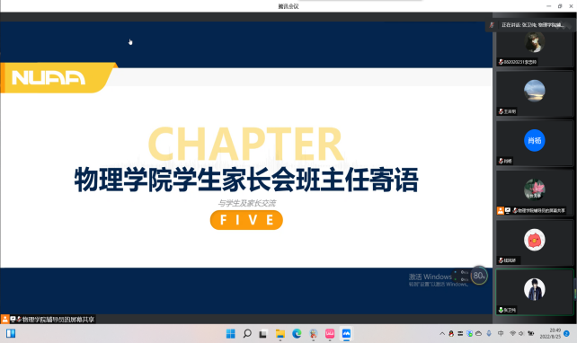 新学期开学前夕,为加强家校合作,有针对性地解答各阶段学生及家长关心关切问题,共促学生成长成才,手机娱乐城官方网站 召开了2019级、2020级线上家长会暨年级会。物理系主任尤文龙,应用物理系主任王吉明,班主任肖杨、张卫纯、徐峰、钱凤娇参会,并与学生、家长交流。辅导员胡诗帆和邢临川主讲。