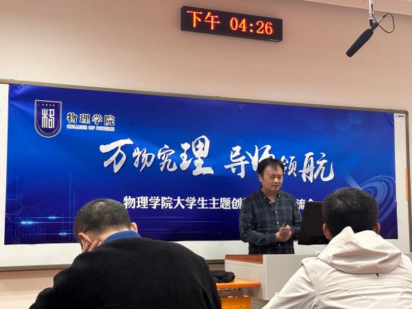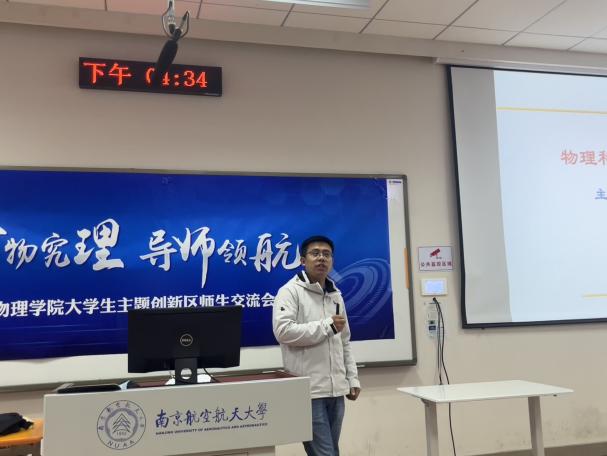 卢俊峰介绍了手机娱乐城官方网站 大学生主题创新区的建设情况、创新区对本科生创新实践能力培养的支撑,鼓励学生积极了解、投身科研科创,提升素质能力。九大主题创新区包括“物理科学与应用”、“紫外日盲探测”、“空天智能材料与器件”、“物理实验演示与探究”等。每个创新区老师代表分别介绍了创新区的基本情况、主要研究方向以及所在领域的前沿发展、实验室设备条件、人才培养模式以及可供本科生选择的科创项目。李伟伟老师介绍了跟航空学院合作研究的空天智能材料与器件课题;姜明明老师介绍了紫外探测器在军事与日常生活中的应用;王吉明老师介绍了创新区承担的物理学术竞赛与物理实验竞赛的指导;董大兴老师围绕各种物理感知元件介绍了传感器技术与应用;潘琦老师介绍了创新区正在研究开发的多种物理演示实验;伏洋洋老师介绍了创新区自主搭建的“声学结构功能材料实验室”;吕梦蛟老师介绍了超原子核第一性原理的计算研究;罗强老师介绍了量子物理领域的前沿研究。同学们了解到了大学学习的广泛性,更深刻的理解了自主学习的重要性,对今后的学习科研有了更加清晰的规划,增强了基础学科学习的信心。