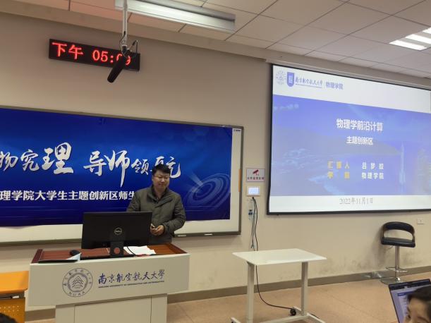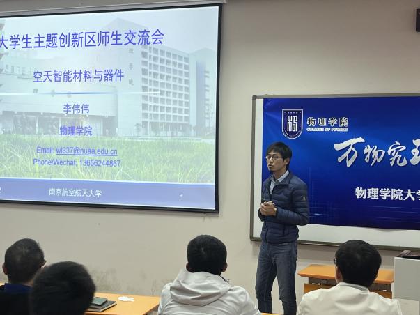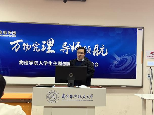 卢俊峰介绍了手机娱乐城官方网站 大学生主题创新区的建设情况、创新区对本科生创新实践能力培养的支撑,鼓励学生积极了解、投身科研科创,提升素质能力。九大主题创新区包括“物理科学与应用”、“紫外日盲探测”、“空天智能材料与器件”、“物理实验演示与探究”等。每个创新区老师代表分别介绍了创新区的基本情况、主要研究方向以及所在领域的前沿发展、实验室设备条件、人才培养模式以及可供本科生选择的科创项目。李伟伟老师介绍了跟航空学院合作研究的空天智能材料与器件课题;姜明明老师介绍了紫外探测器在军事与日常生活中的应用;王吉明老师介绍了创新区承担的物理学术竞赛与物理实验竞赛的指导;董大兴老师围绕各种物理感知元件介绍了传感器技术与应用;潘琦老师介绍了创新区正在研究开发的多种物理演示实验;伏洋洋老师介绍了创新区自主搭建的“声学结构功能材料实验室”;吕梦蛟老师介绍了超原子核第一性原理的计算研究;罗强老师介绍了量子物理领域的前沿研究。同学们了解到了大学学习的广泛性,更深刻的理解了自主学习的重要性,对今后的学习科研有了更加清晰的规划,增强了基础学科学习的信心。