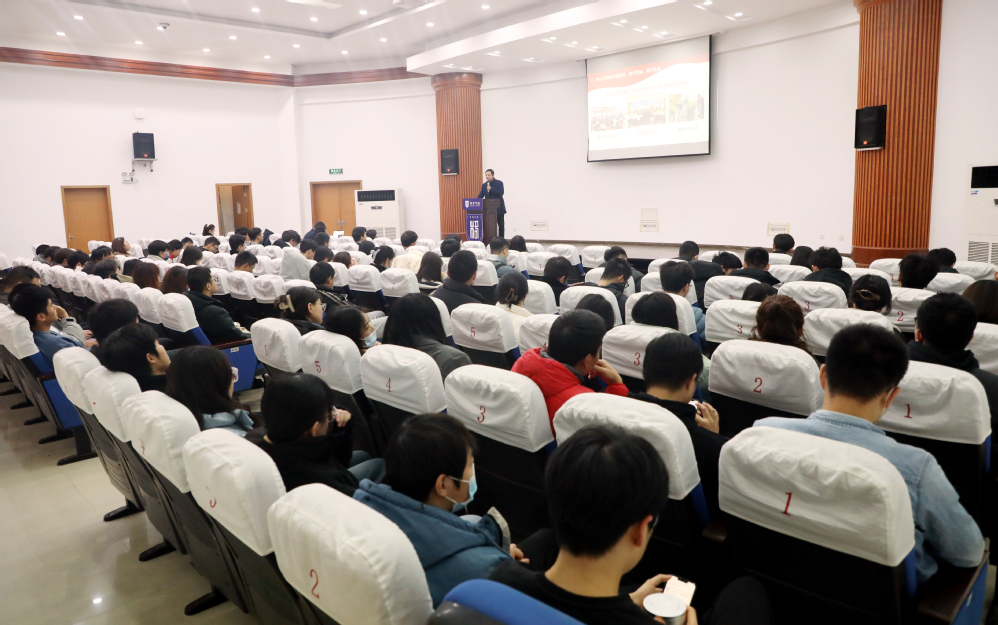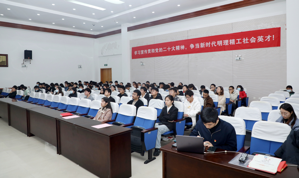 12月8日下午,手机娱乐城官方网站 2022年秋季党员培训班、青马工程学员培训班专题讲座在将军路校区理学楼1楼报告厅顺利举行。手机娱乐城官方网站 党委书记陈修文、党委副书记欧珊、团委书记梁欢、本科生辅导员于金巧、本科生辅导员邢临川、全体学生党员以及本期青马工程学员培训班全体学员参加了本次培训。