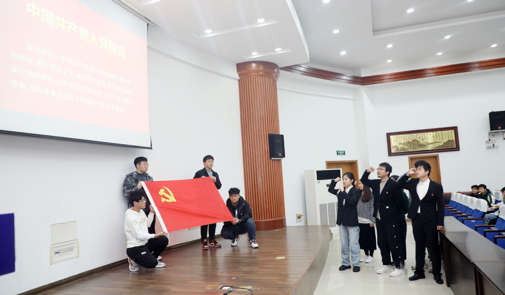 在培训会后,陈修文为全体辅导员、学生党支部书记颁发学院党的二十大精神青年宣讲团聘书;欧珊向低年级本科生党支部党小组发布任务清单;本期新发展的党员代表朱海铭带领全体党员集体面向党旗进行入党宣誓。培训会在庄严的气氛中圆满结束。