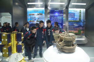 他们首先参观了航天教育教学基地基地集中展示了中国航天事业的发展历程,以及航天“星、箭、弹、船、器”的技术型谱、设计原理、整体结构等相关内容在基地讲解团志愿者的讲解下,同学们饶有兴致地有序参观基地,认真地研究卫星模型及各种深空探测器。