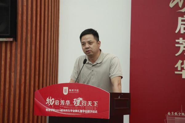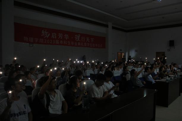 619日下午,手机娱乐城官方网站 “物启芳华,理行天下”2023届本科生毕业典礼暨学位授予仪式于理学楼报告厅举行。手机娱乐城官方网站 党委书记陈修文、院长刘友文、党委副书记欧珊、副院长阎志军、学院党委委员、院长助理、各系、中心主任、专业老师以及2023届全体毕业生出席典礼。为充分发挥典礼的育人效果,学院低年级全体本科生也参加了本次典礼,聆听优秀学长学姐的故事分享。典礼由毕业生陈豪杰、江淼主持。