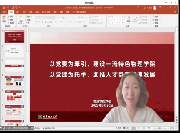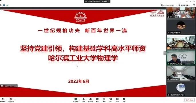 为深入开展学习贯彻习近平新时代中国特色社会主义思想主题教育,加强兄弟学院间的交流学习,共同推进基础学科师资队伍建设,6月20日上午,西北工业大学物理科学与技术学院牵头举办了工业和信息化部部属七所高校物理学科“坚持党建引领,构建基础学科高水平师资队伍”专题研讨会,北京航空航天大学手机娱乐城官方网站 、北京理工大学手机娱乐城官方网站 、哈尔滨工业大学手机娱乐城官方网站 、哈尔滨工程大学物理与光电工程学院、南京理工大学理学院及西北工业大学物理科学与技术学院共同参加,我校手机娱乐城官方网站 组织党委委员、院长助理、系(中心)班子、教工党支部委员、科级干部共同线上参加了专题研讨会。会议由西北工业大学物理科学与技术学院党委书记晁小荣主持。