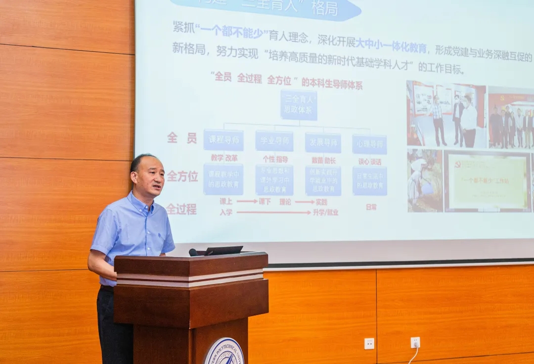 随后,七所高校物理学科相关负责人重点围绕党建与业务融合、基础学科特色、师资队伍现状、存在问题和思路举措等方面进行汇报交流。我校手机娱乐城官方网站 党委书记陈修文从学院基本情况、主题教育开展情况、师资队伍建设情况三个方面进行了专题汇报。参会人员重点聚焦党管人才、强化人才发展顶层设计、高层次人才精准引进、平台载体搭建、青年教师培育和团队建设等方面充分展开了交流研讨。