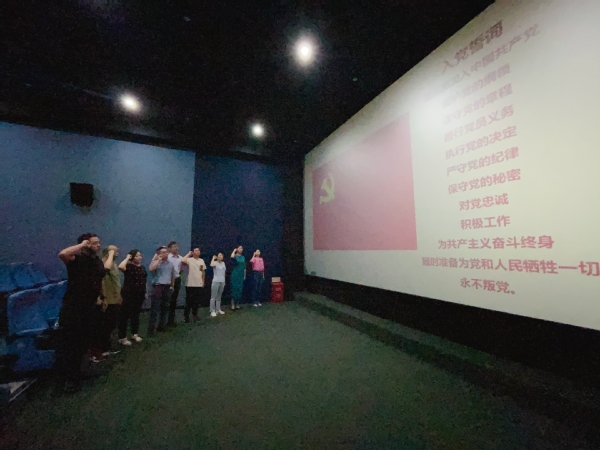 9月27日下午,首期“集体政治生日”活动来到电影《一山之隔》观看现场。6位在7-9月入党的教师党员和支部书记、委员代表共同参加活动。