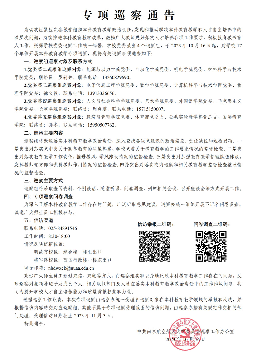 专项巡察通告