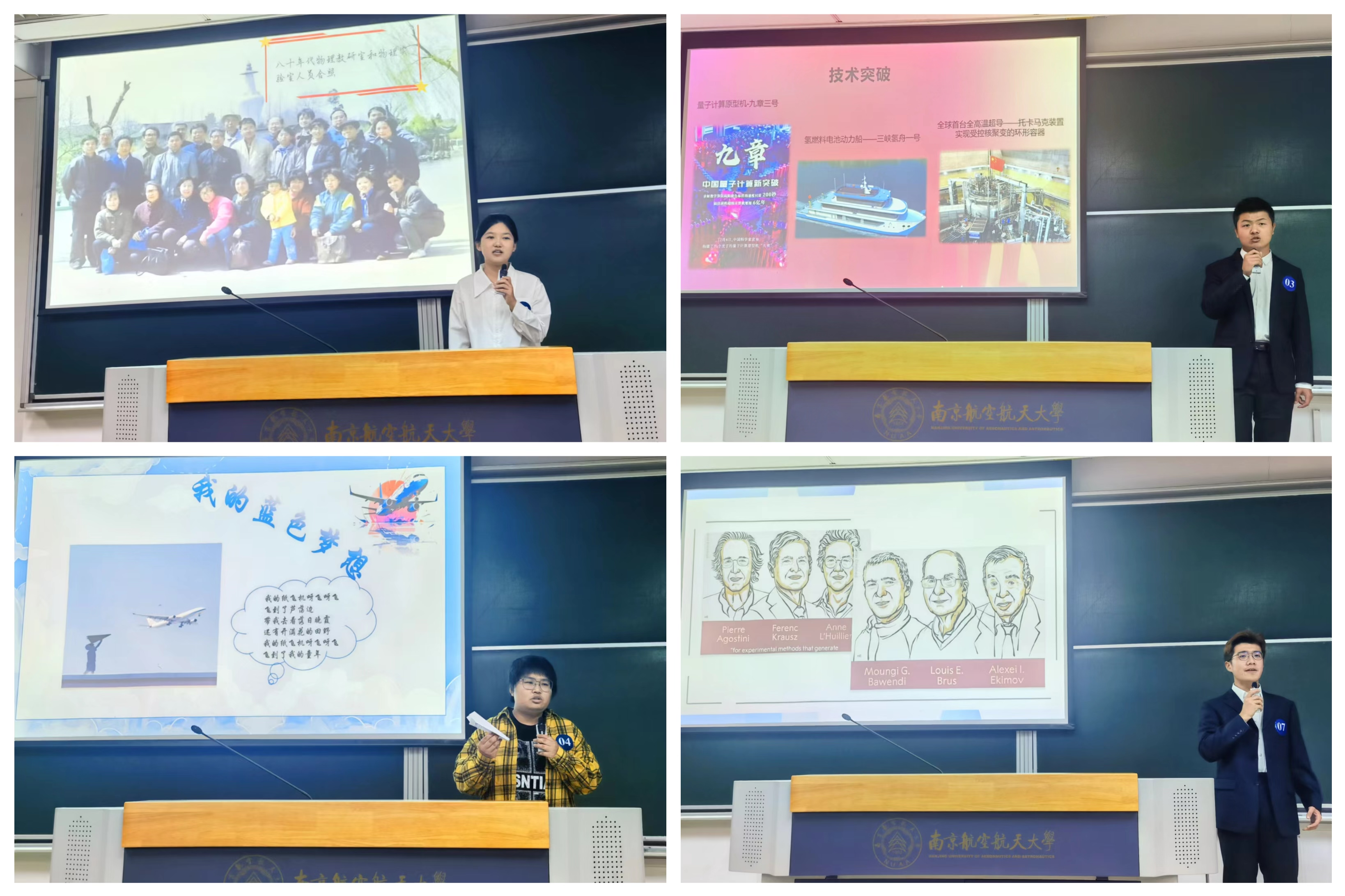 比赛前期在低年级本科生中通过班级推荐的方式最终选拔出6位优秀个人和1个优秀团体参赛,汇聚一堂表达作为南航人的自豪、对学院的祝福,共同发出“请党放心、强国有我”的青春最强音。