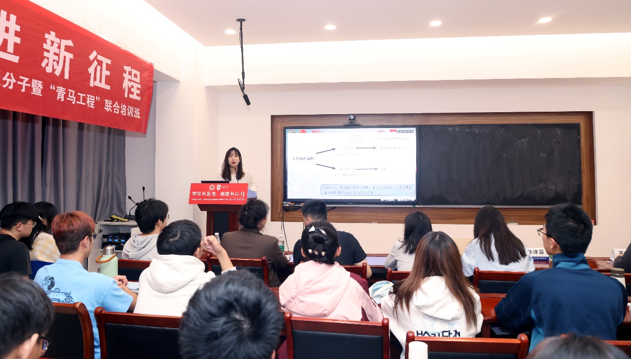 为深入学习宣传贯彻党的二十大精神,坚持以习近平新时代中国特色社会主义思想为指引,提升入党积极分子、学生骨干教育培养质量,11月5日晚上,手机娱乐城官方网站 和马克思主义学院在理学楼519报告厅联合举办2023年秋季入党积极分子暨“青马工程”培训开班仪式。马克思主义学院党委副书记阙愚、手机娱乐城官方网站 党委副书记欧珊、手机娱乐城官方网站 团委书记梁欢、马克思主义学院辅导员王佳、手机娱乐城官方网站 辅导员于金巧参加。活动邀请马克思主义学院青年教师、校“党的创新理论讲习团”成员孙沐芸开展专题培训。