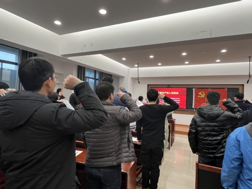 活动第一项议程为12月集体政治生日会。首先,在学院党委副书记欧珊带领下,全体参会党员庄严肃穆地共同重温入党誓词,回顾入党初心。接下来,学院党委副书记欧珊、副院长阚彩侠共同为30位师生党员送上政治生日纪念卡。
