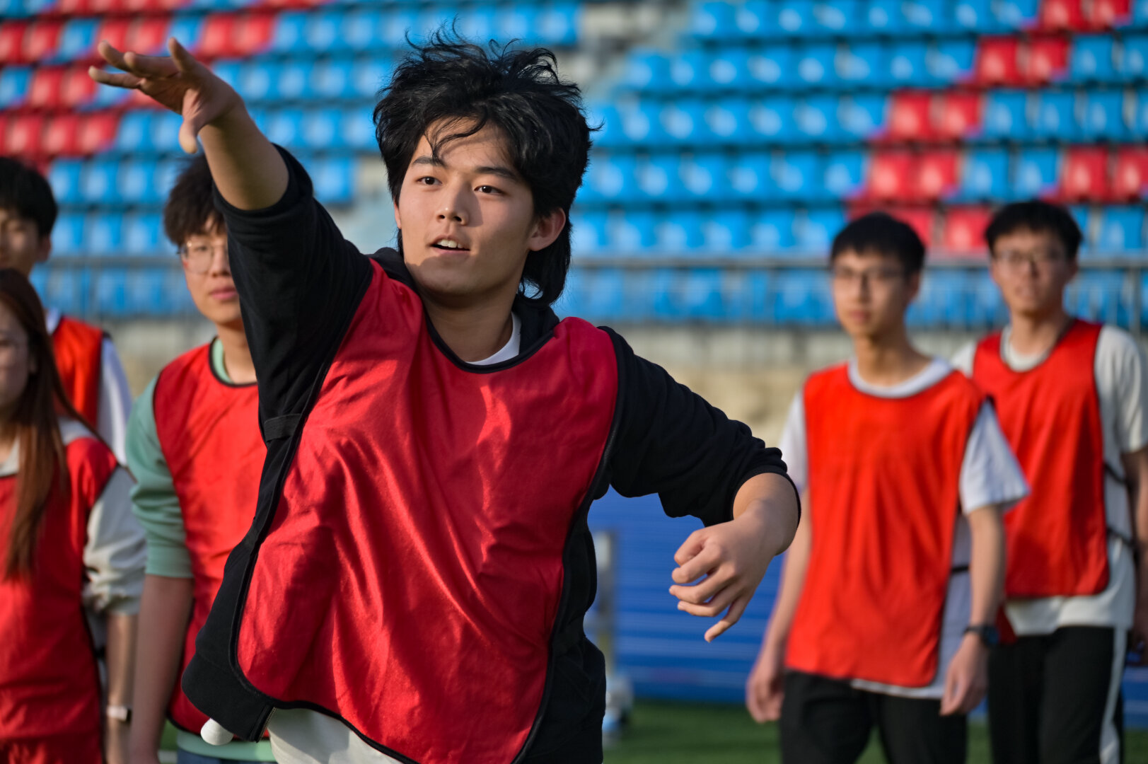 在“风气云涌 避球砺志”项目中,各代表队师生坚守自己的阵营,屏息凝视,以高度集中的精神关注着对手抛来的球并以矫健的身姿迅速躲避。场上时有因避闪不及被砸中而发出的惋惜,时有因接住队友抛来的球而发出的喝彩,大家都全身心投入到游戏中,肆意挥洒汗水,释放压力。