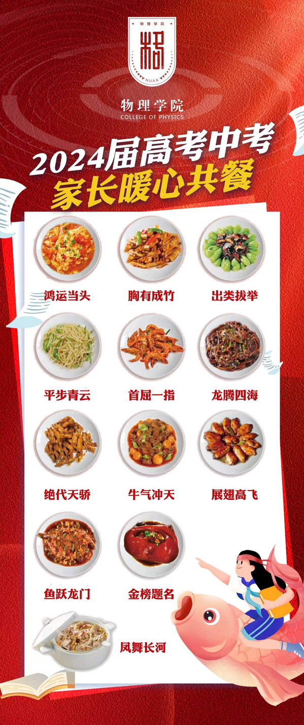 暖心加油餐,冲刺“不孤单”。目前距离高考还有2天,距离中考还有10天,寒窗即将迎来喜讯。在此祝福手机娱乐城官方网站 与全体南航教工子女首屈一指、十全十美、金榜题名!
