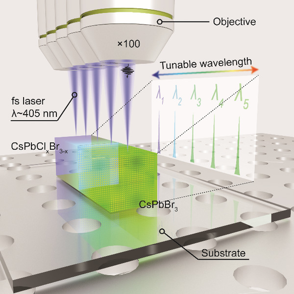 手机娱乐城官方网站 光电功能材料器件与物理研究团队卢俊峰副研究员与东南大学徐春祥教授、北京航空航天大学潘曹峰教授合作,利用气相阴离子交换方法制备了卤素组分沿长轴方向呈梯度渐变的CsPbClxBr3-x微米线,为构建宽范围、波长连续可调谐新型激光器同时提供了必要的光学增益介质和谐振腔。相关成果以“Composition-Graded Perovskite Microwire Toward Broad Wavelength Tunable Single-Mode Lasing”为题在线发表在光学顶级期刊《Laser&Photonics Reviews》上。卢俊峰副研究员为第一作者和通讯作者,硕士研究生何小朋为该工作共同第一作者,东南大学徐春祥教授、北京航空航天大学潘曹峰教授为共同通讯作者。