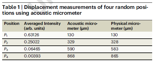 1:基于轨道原子的声学螺旋测微器与日常使用的螺旋测微器的测量结果对比。