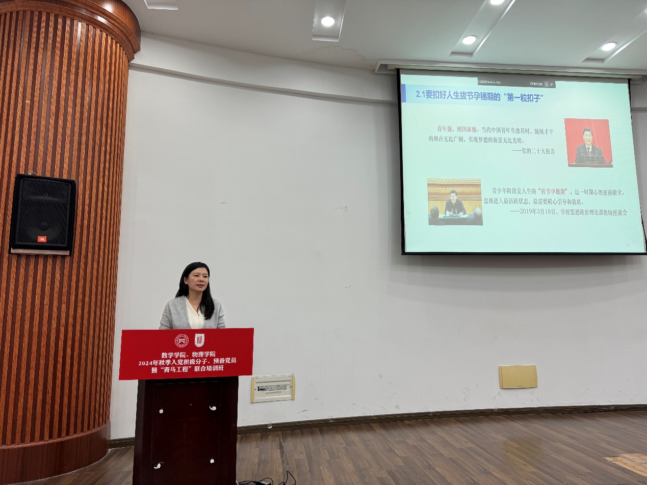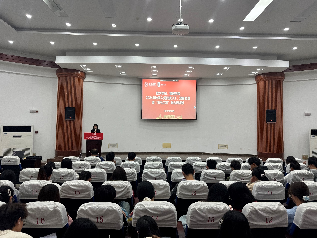 10月26日,手机娱乐城官方网站 、数学学院联合举办2024年秋季入党积极分子、预备党员暨“青马工程”培训班,两学院110余名入党积极分子、预备党员共同参加。培训班开班仪式由手机娱乐城官方网站 党委副书记欧珊主持。