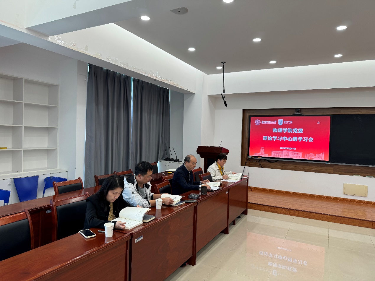10月31日,物理学院党委召开理论学习中心组学习会,专题学习习近平总书记重要讲话和全国教育大会精神,物理学院全体领导班子成员参加学习。