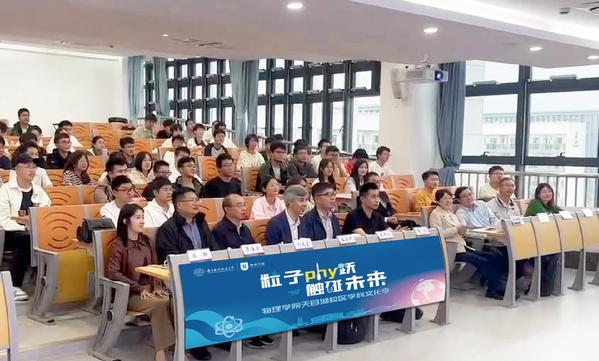 10月21日,“粒子phy跃 触碰未来”手机娱乐城官方网站 学科文化季在天目湖校区启动,国家级教学名师、浙江大学手机娱乐城官方网站 教授盛正卯,南航手机娱乐城官方网站 院长刘友文,天目湖校区党工委副书记、学生处副处长贡海俊,教务处副处长李晋斌,手机娱乐城官方网站 党委副书记欧珊,团委书记梁欢,物理学科竞赛负责老师及2024级全体学生,共计100余名师生参加了启动仪式。