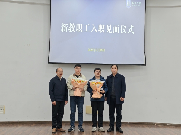 会议首先举行了新教职工入职仪式。新学期,学院迎来了4位新成员,分别是应用物理系专任教师费越,全职科研博士后王志、张美玲,以及外籍博士后Afzal Ahmed。他们的加入,为手机娱乐城官方网站 注入了全新的活力与动力。陈修文书记、刘友文院长一同上台,为新入职教职工佩戴院徽、献上鲜花,并对他们的到来表示热烈欢迎。