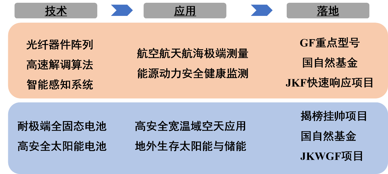 团队聚焦于航空航天乃至地外极端条件(高温、高压、高速、强振、强辐射等)应用场景,发展特种光纤集成与测量技术、特种能量转换与固态储能技术,以及基于特种光纤的电池监测交叉方向,做出了一系列特色工作,迄今为止已发表Nature Communication、Advanced Optical Materials、Advanced Functional Materials、Science Advances等多个一流期刊,申请多项中国和国际发明专利,主持和参与国自然青年、重点、省重点研发、揭榜挂帅和JKW多个项目,获得江苏省科技进步一等奖、教育部高校优秀研究成果奖(自然科学类)二等奖和中国光学工程学会科技进步二等奖等。