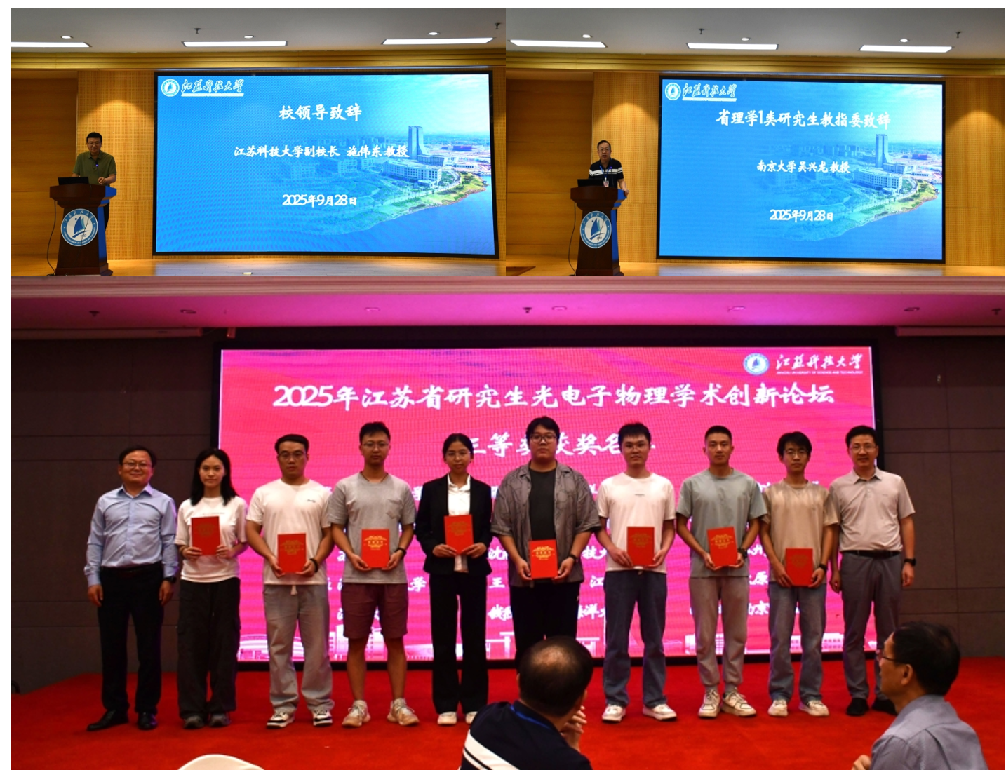 2025年江苏省研究生光电子物理学术创新论坛由江苏省理学I类研究生教育指导委员会主办,江苏科技大学承办,江苏科技大学理学院和苏州市光子产业科技镇长团协办。论坛自启动以来,共收到东南大学、南京航空航天大学等省内14所高校,以及太原理工大学、深圳大学等部分省外高校论文摘要近100份,吸引省内外各高校近115名师生参会。经过专家现场专业点评,最终评选出一等奖5名、二等奖10名、三等奖15名。