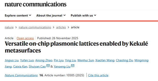 手机娱乐城官方网站 光电功能材料器件与物理研究团队曹水艳副研究员与国际前沿科学研究院刘衍朋教授合作,研究了一种多功能Kekulé超表面平台与基于此系列超表面结构的多自由度可控SPP晶格,实现了表面等离子体激元在二维极限下的晶格类型、空间分布及位点相对强度的可控参数调控;构建了片上可重构的面内/面外光源阵列,并进一步证明了的SPP晶格作为图像加密/解密的技术应用。相关成果以“基于Kekulé超表面的多功能片上等离激元晶格(Versatile on-chip plasmonic lattices enabled by Kekulé metasurfaces)”为题在线发表于《Nature Communications》。手机娱乐城官方网站 22级电子信息专业硕士生刘金果、罗宇凡及聊城大学赵爱荣博士为论文共同第一作者,曹水艳副研究员和国际前沿科学研究院刘衍朋教授为共同通讯作者。光电功能材料器件与物理研究团队阚彩侠教授、姜明明教授、杜朝玲副教授也参与了该工作的研究。