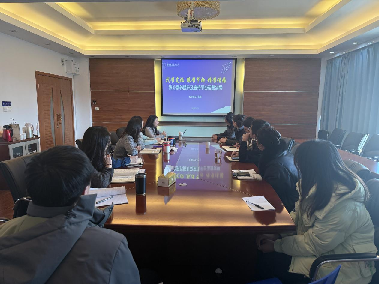 1月9日下午,手机娱乐城官方网站 开展格“务”致知——手机娱乐城官方网站 服务效能提升讲堂,本期特邀校党委宣传部融媒体中心副主任彭丽开展题为《找准定位、踩准节拍、精准传播——媒介素养提升及宣传平台运营实操》的专题培训。全体机关人员以及学生骨干参加培训,培训由院党委副书记魏慧冬主持。